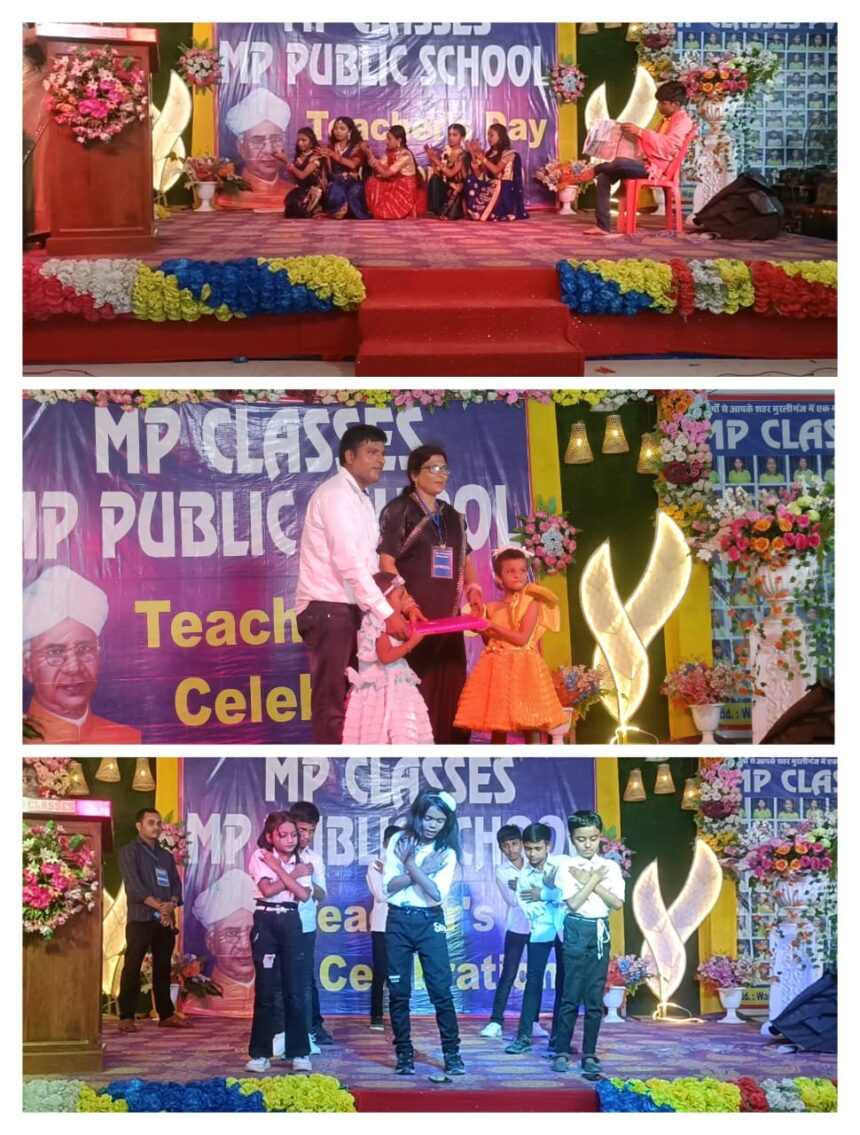 आज शिक्षक दिवस के उपलक्ष में कई शैक्षणिक संस्थानों में विभिन्न प्रकार के कार्यक्रमों का आयोजन रखा गया। मुरलीगंज शहर के बहु प्रसिद्ध एम०पी क्लासेस एवं एम०पी० पब्लिक स्कूल नवटोल के डायरेक्टर मिथिलेश कुमार ने भी ऐसा ही एक कार्यक्रम मुरलीगंज गोल बाजार स्थित भगत धर्मशाला में रखा। कार्यक्रम की शुरुआत केक काटकर एवं कार्यक्रम में आए विशिष्ट अतिथियों द्वारा सामूहिक रूप से दीप प्रज्वलित कर किया गया। इस कार्यक्रम में मुरलीगंज के तमाम बुद्धिजीवी, शिक्षाविद एवं राजनीतिक दलों के लोगों ने शिरकत किया। महिला सशक्तिकरण से लेकर कई सामाजिक बिंदुओं पर एम०पी० क्लासेस के बच्चों द्वारा शानदार प्रस्तुति पेश की गई, जिसे देखने के बाद कार्यक्रम में आए तमाम शिक्षाविद से लेकर अभिभावकों ने तालियों की गरगराहट से बच्चों का हौसला अफजाई किया। कार्यक्रम में मौजूद अभिभावकों एवं शिक्षाविदों का खूब मनोरंजन किया। कार्यक्रम में मुख्य रूप से उपस्थित नगर पंचायत अध्यक्षा श्रीमती सर्जना सिद्धि मौजूद रही।