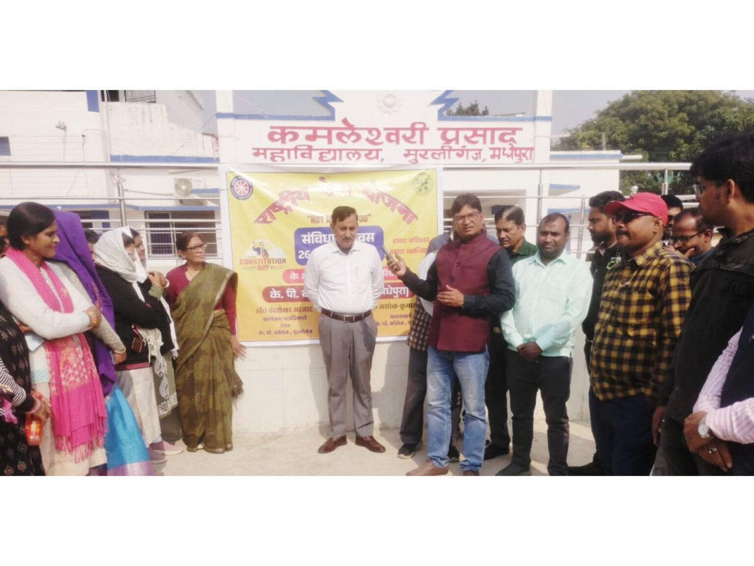 कमलेश्वरी प्रसाद महाविद्यालय, मुरलीगंज में बुधवार को संविधान दिवस विधिवत् गरिमा, उत्साह और गंभीर संवैधानिक भाव के साथ मनाया गया। कार्यक्रम की शुरुआत संविधान की प्रस्तावना वाचन से हुई, जिसमें महाविद्यालय के सभी शिक्षक, शिक्षकेत्तर कर्मचारी एवं बड़ी संख्या में छात्र-छात्राएँ सम्मिलित हुए। प्रस्तावना के सामूहिक पाठ के दौरान पूरा परिसर संवैधानिक आदर्शों और राष्ट्रभाव से गूंज उठा।